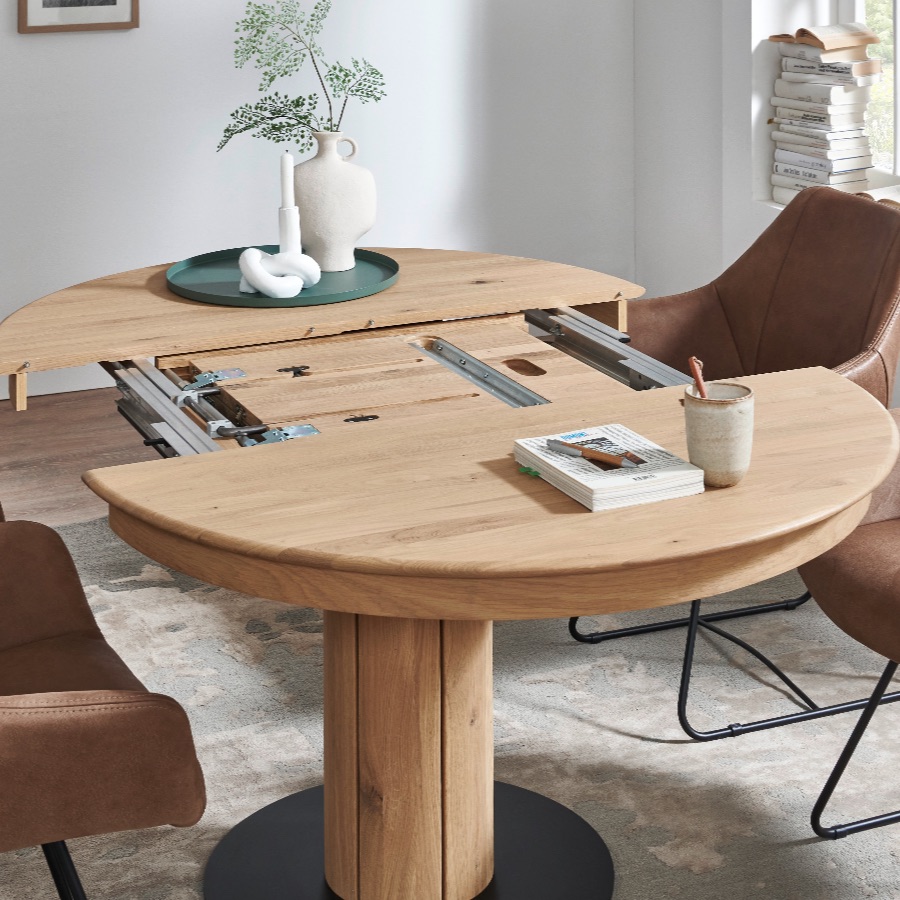 Eine Klappeinlage von 50 cm ist bei den Durchmessern 100 cm, 110 cm, 120 cm und 130 cm möglich.